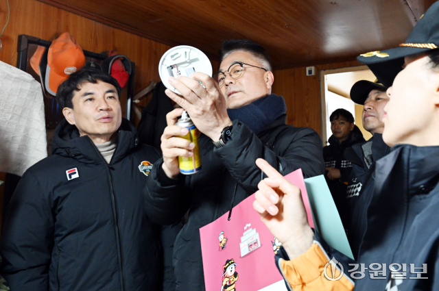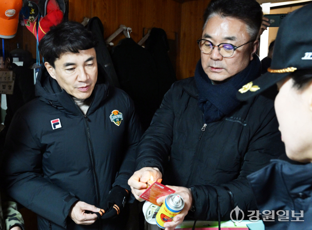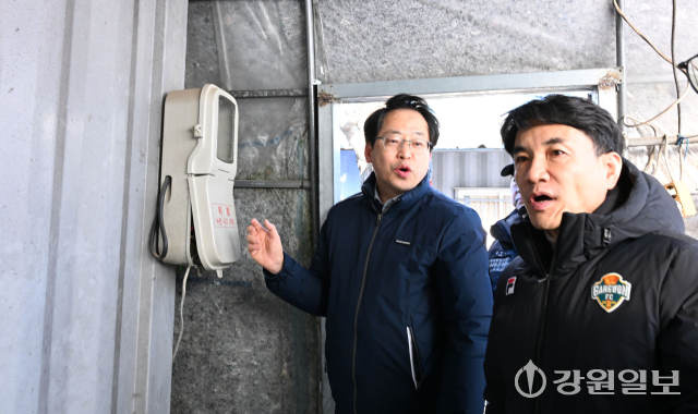김진태 지사가 13일 춘천지역내 겨울철 주거환경 취약계층 세대에 방문해 안전점검을 하고 있다.