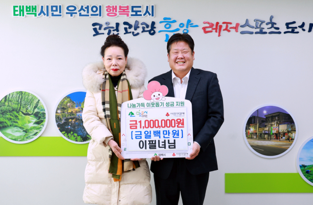 이날 황지동행정복지센터 주민자치프로그램 노래교실 강사로 활동하고 있는 이필녀씨는 시를 방문, 희망2026 나눔캠페인 성금 100만원을 전달했다. 또 황연봉사단도 저소득 가구 및 소외계층 지원을 위해 써 달라며 성금 100만원을 기부했다.