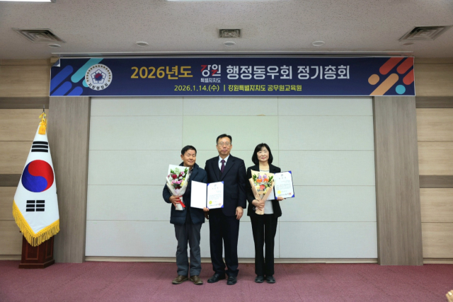 지난해 10월 2025 한마음자원봉사실천 결의대회를 성공적으로 개최한 정선군행정동우회와 극심한 가뭄 당시 현장 봉사활동에 나섰던 강릉시행정동우회에 강원특별자치도지사 감사패가 전달됐다.