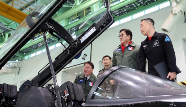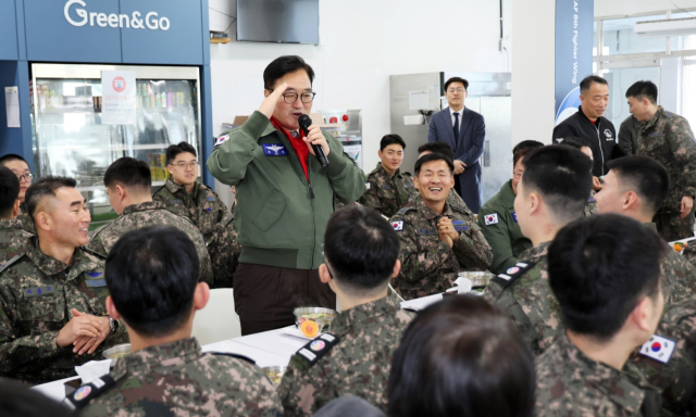 우원식 국회의장이 14일 원주 공군 제8전투비행단을 방문해 부대 현황을 살펴보고 장병들을 격려했다.