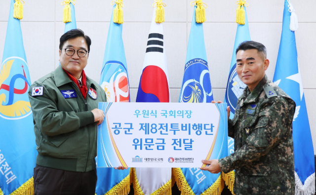 우 의장은 이날 공군 공중전투사령관 채운기 소장, 제8전투비행단 단장 이긍규 준장과 장병들을 만나 "국방에 헌신하고 있는 제8전투비행단 여러분들을 만나보니 정말 든든하다"며 "우리 하늘을 지키는 자유 국방의 상징으로서 역할을 다하겠다는 모습이 느껴졌고, 언제나 대비 태세를 잘 갖춰 우리 국민들이 안심할 수 있도록 당부한다"고 말했다.