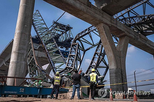 당시 크레인이 고가철로에 들어가는 콘크리트 보를 들어 올리다가 무너지면서 사고가 났다고 현지 매체들은 전했다.