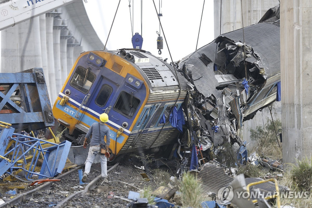 앞서 전날 오전 9시 30분께 나콘라차시마주 시키오 지역의 고속철도 고가철로 공사장에서 크레인이 붕괴, 공사장 아래의 기존 철로로 떨어지면서 방콕에서 동부 우본라차타니주로 향하던 열차의 2개 객차를 덮쳤다.
