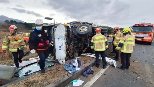 20일 제주의 한 도로에서 70대가 몰던 화물차가 전도돼 1명이 숨지고 1명이 다쳤다.
