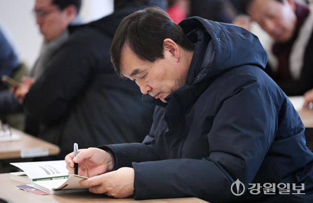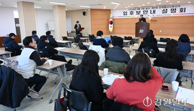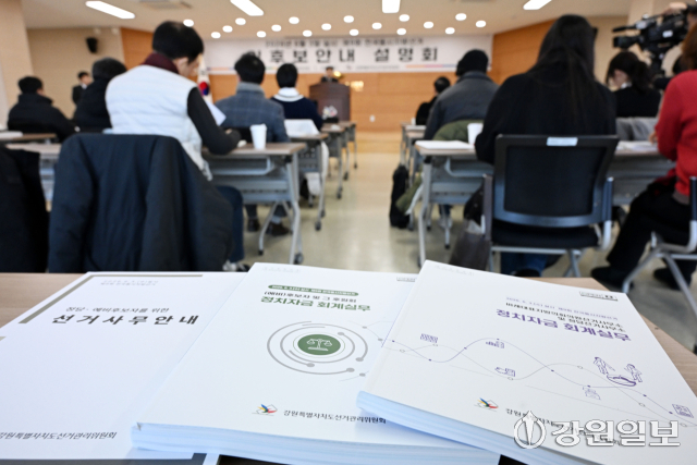 제9회 전국동시지방선거 도지사·도교육감 입후보안내 설명회가 22일 강원자치도선거관리위원회에서 입후보예정자, 선거사무관계자 등이 참석한 가운데 열렸다.
