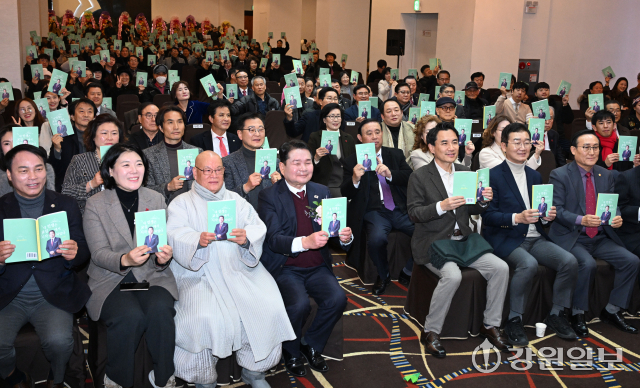 이날 춘천 베어스호텔에서 열린 신경호 교육감의 자서전 '내 인생은 교실에서 시작되었다' 출판기념회에는 강원특별자치도교육청 직원을 비롯해 강원권 교원 등 500여명이 대거 참석했다. 이에 더해 김진태 도지사와 정광열 전 경제부지사, 최성현 강원관광재단 대표, 박기영·박관희·김희철·박호균 임미선 도의원 등 국민의힘 소속 광역·기초의원, 출마 예정자들이 함께 자리했다.