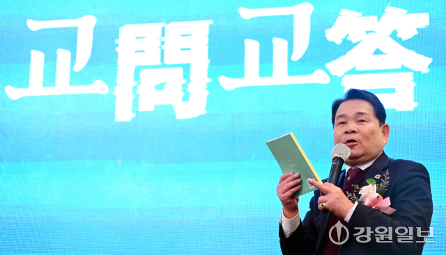 재선에 도전하는 신경호 강원도교육감이 24일 출판기념회를 열고 세 결집에 나섰다.
