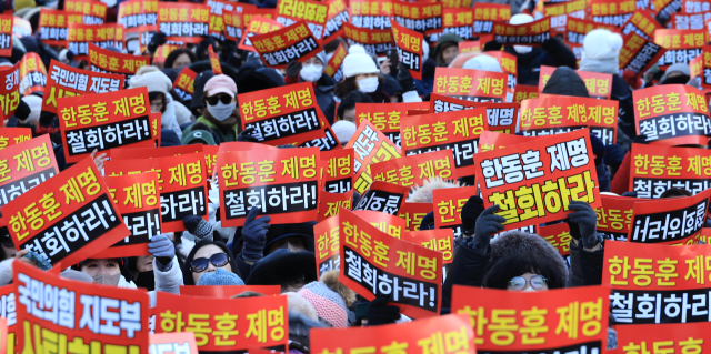 이런 상황에서 24일, 한 전 대표의 지지자들이 서울 여의도에서 대규모 집회를 열고 당의 징계 방침 철회를 강하게 요구했다.