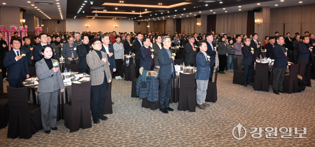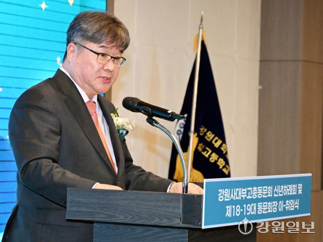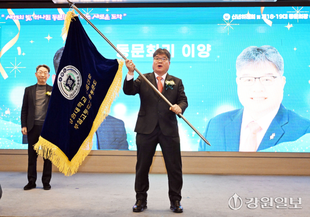 강원사대부고 신년하례회 및 제18·19대 동문회장 이·취임식이 24일 춘천 스카이컨벤션웨딩홀에서 박종근 전임회장과 김대봉 신임회장 및 동문들, 이낙현 강원사대부고 교장, 김진태 지사, 신경호 교육감, 육동한 시장, 진종오 국회의원을 비롯한 내빈들이 참석한 가운데 열렸다.