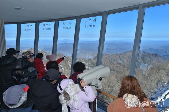 금강산댐 관측은 DMZ 투어에서 빼놓을 수 없다. 때마침 화천군이 총연장 2.12㎞의 백암산케이블카를 운영하면서 예전에 힘겹던 접근은 관광 편의로 바뀌었고, 감시의 풍경은 조망의 대상이 됐다. 백암산케이블카는 이 기이한 변화를 상징한다. 2014년 착공해 8년 만인 2022년 마무리했다. 국내 최북단, 최고도에 위치한 이 케이블카를 타고 해발 1,178m의 백암산 정상에 오르면 국내에서 유일하게 우리의 평화의댐과 북 금강산 댐을 동시에 조망할 수 있다.
