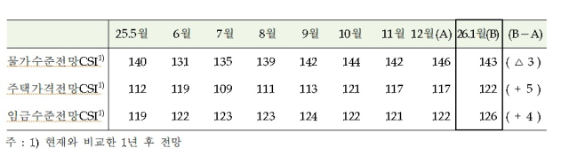 한국은행 강원본부가 발표한 ‘1월 강원지역 소비자동향조사 결과’에 따르면 이달 주택가격전망 소비자심리지수(CSI)는 122로 전월 대비 5포인트(p) 상승했다. 이는 2022년 5월(125) 이후 3년 7개월 만에 가장 높은 수준이다.