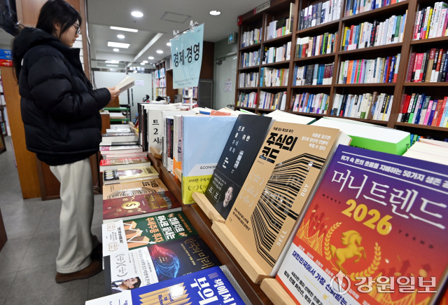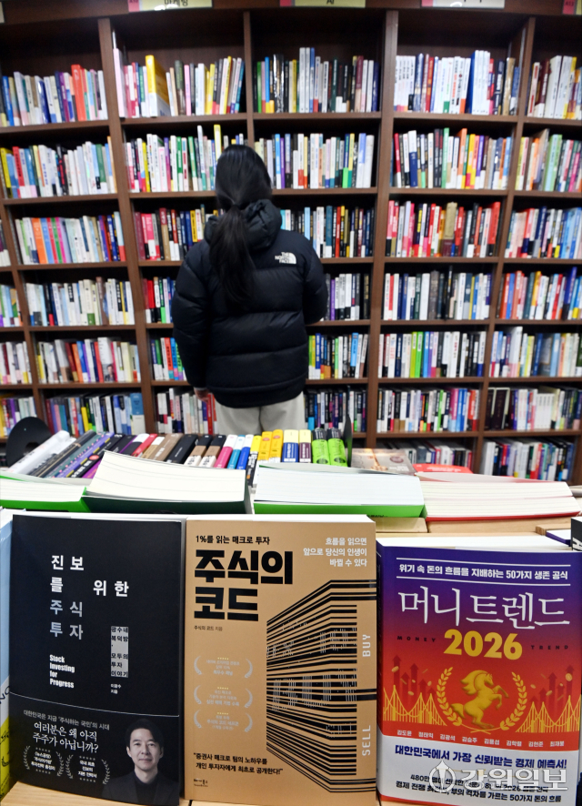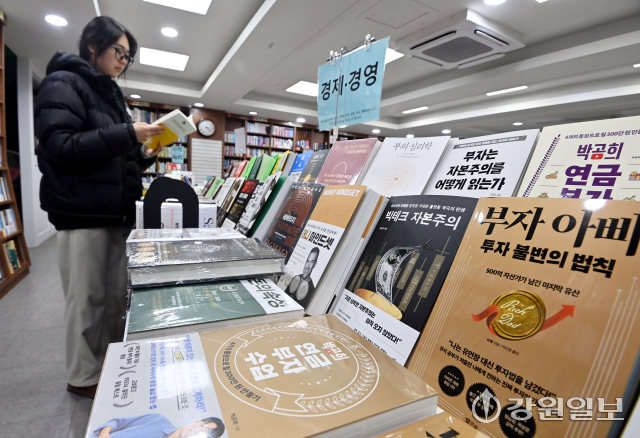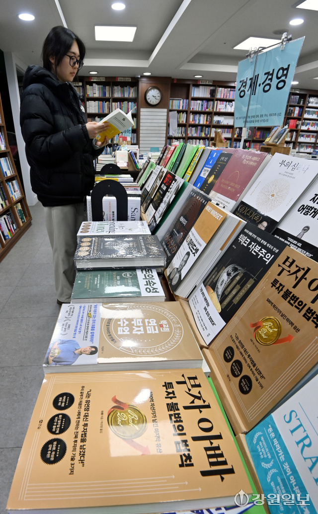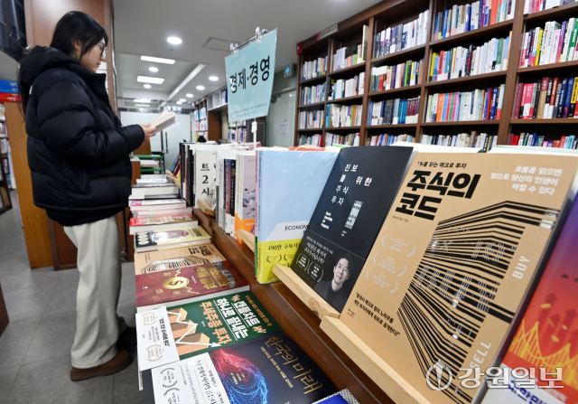 국내 주식시장의 상승세가 이어지면서 투자 관련 서적에 대한 관심도 높아지고 있다. 27일 춘천시 석사동 광장서적에서 시민이 주식 투자 관련 도서를 살펴보고 있다. 임도혁기자