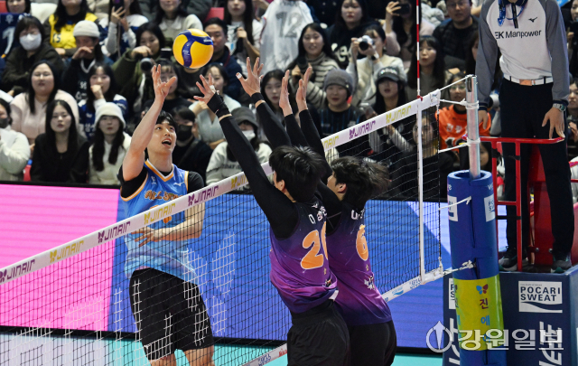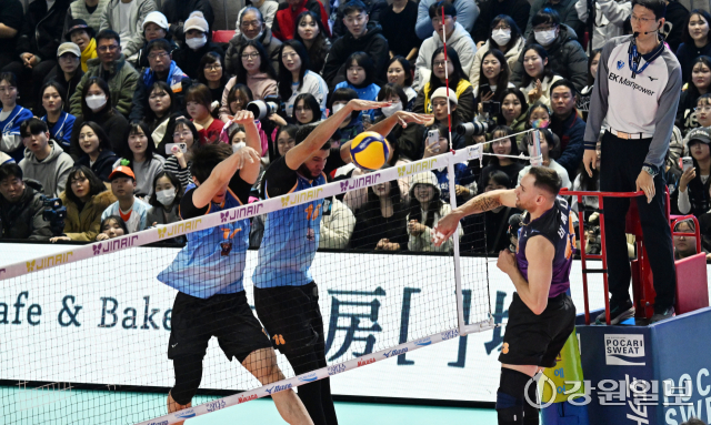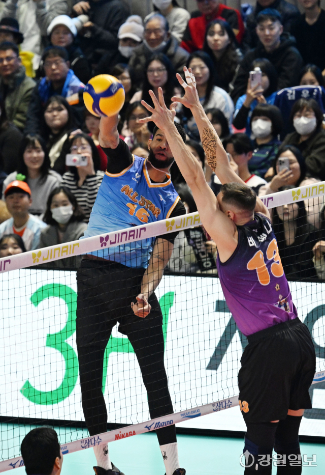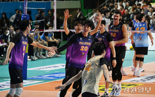 25일 춘천 호반체육관에서 열린 '진에어 2025~2026 V-리그 올스타전'에서 K-스타 팀의 레오(현대캐피탈)가 공격을 시도하고 있다. 박승선기자25일 춘천 호반체육관에서 열린 '진에어 2025~2026 V-리그 올스타전'에서 K-스타 팀의 레오(현대캐피탈)가 공격을 시도하고 있다. 박승선기자25일 춘천 호반체육관에서 열린 '진에어 2025~2026 V-리그 올스타전'에서 K-스타 팀의 레오(현대캐피탈)가 상대의 공격을 블로킹하고 있다. 박승선기자25일 춘천 호반체육관에서 열린 '진에어 2025~2026 V-리그 올스타전'에서 K-스타 팀의 베논(한국전력)이 공격을 시도하고 있다. 박승선기자25일 춘천 호반체육관에서 열린 '진에어 2025~2026 V-리그 올스타전'에서 K-스타 팀의 김진영(현대캐피탈)이 신영석(한국전력)의 어깨위에 올라타 상대의 공격을 블로킹 하고 있다. 박승선기자25일 춘천 호반체육관에서 열린 '진에어 2025~2026 V-리그 올스타전'에서 V-스타 팀의 이상현(우리카드)이 공격을 성공시킨 후 동료들과 기뻐하고 있다. 박승선기자25일 춘천 호반체육관에서 열린 '진에어 2025~2026 V-리그 올스타전'에서 K-스타 팀의 이우진(삼성화재)가 공격을 시도하고 있다. 박승선기자