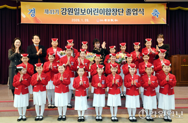 제41기 강원일보 어린이합창단 졸업식이 26일 강원일보사 대회의실에서 박진오 강원일보사장, 방영세 예술감독 및 졸업생과 단원, 학부모 등이 참석한 가운데 열렸다. 박승선기자