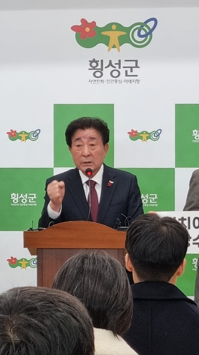 ■ 횡성군, 일방적 통합 주장 사과 촉구=횡성군은 27일 군청에서 김명기 군수, 이상면 군이장연합회장과 읍면 이장단, 석병진 군번영회장 등이 참석한 가운데 1·26 원주시장 망언 규탄 기자회견을 열어 '원주시의 일방적 행정구역 통합 주장에 대한 성명서'를 발표했다.