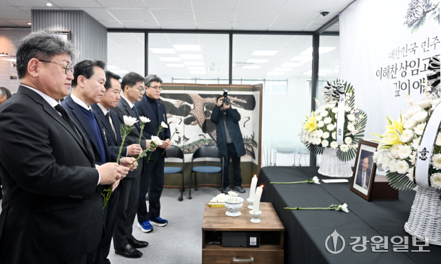 민주주의 거목인 이 전 총리 부고에 정치권 애도 행렬이 몰리고 있다. 허영(춘천갑) 국회의원과 지역위원회 관계자들은 28일 오후 1시 합동 분향에 나선다. 육동한 춘천시장은 31일 예정됐던 출판기념회를 장례 일정에 맞춰 2월7일로 순연하기도 했다.