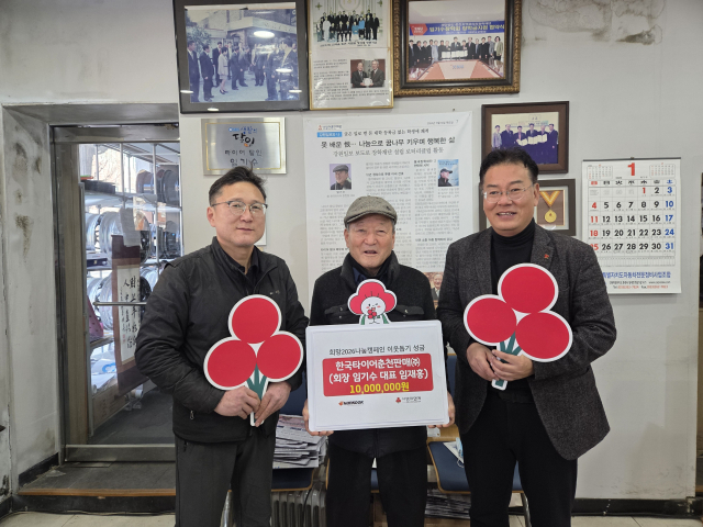 이날 열린 후원금 전달식에는 임기수 한국타이어춘천판매(주) 회장과, 임재홍 대표가 참석해 성금 1,000만원을 기탁했다. 임기수 회장은 “내가 살아있는 한 누군가를 도울 수 있다면 그것만으로도 감사하고 행복하다”며 “앞으로도 힘이 닿는 데까지 어려운 이웃을 돕는 삶을 이어가겠다”고 말했다.