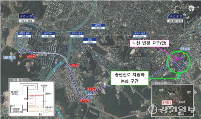논란이 불거지자 시는 지난해 5월부터 관계 기관, 사업 주체와 협의에 나서 해결 방안을 모색해왔고 한전이 추진하는 남춘천변전소(SS)~춘천변전소(SS) 전력구 공사 계획과 연계해 송전선로를 지중화하는 노선 조정안을 제시했다. 이후 시의 참여 아래 노선 방향과 공사비 분담에 대한 양 측의 실무 협의가 이어졌고 협약 체결을 눈 앞에 뒀다.