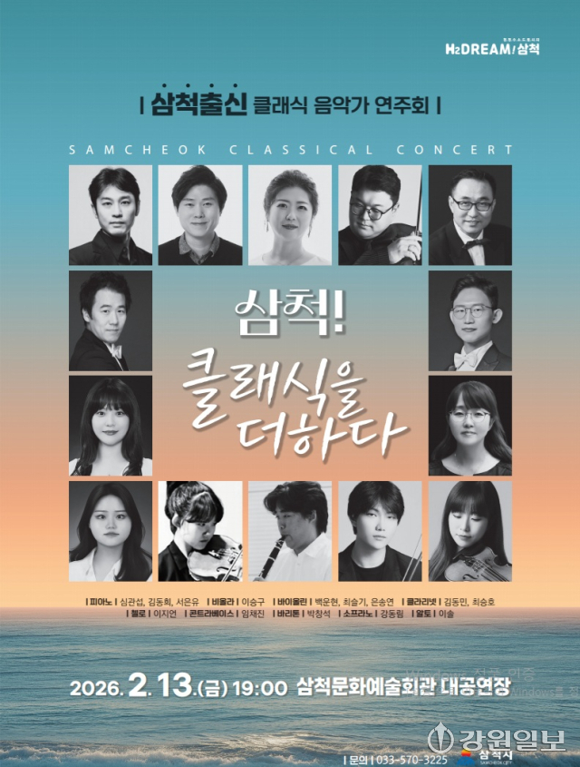 【삼척】삼척시가 지역 출신 클래식 음악가들을 초청, 수준 높은 공연을 선보이는 ‘삼척 출신 클래식 음악가 연주회’를 오는 13일 문화예술회관 대공연장에서 개최한다.
