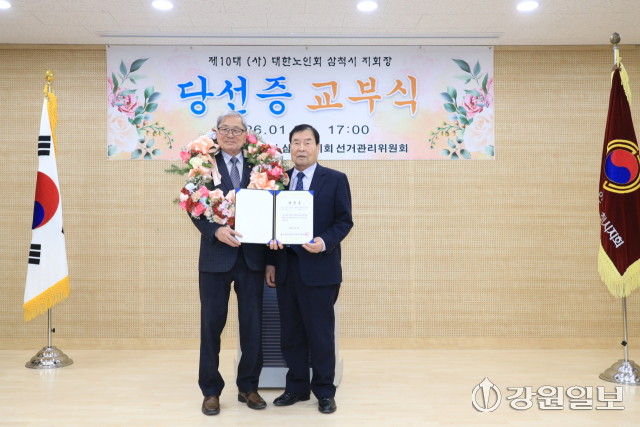 【삼척】박재옥 삼척시 노인회장이 3일 3선 연임에 당선됐다.