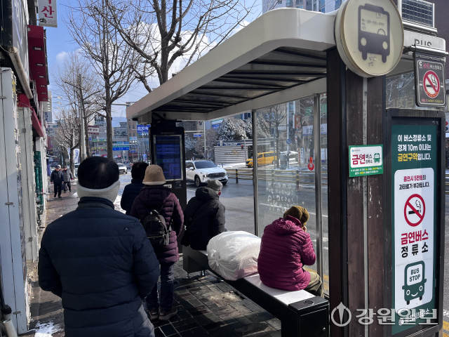 도내 한 지자체 관계자는 “스마트 승강장은 15㎡ 이상의 시유지 확보 등 설치 기준이 있고 구도심이나 협소 도로는 물리적으로 설치가 어렵다”며 “1대당 1억원 수준으로 예산 확보도 쉽지 않은 만큼 한파 대비 예산을 활용해 온열의자를 설치하는 등 점진적으로 개선해 나가겠다”고 했다.