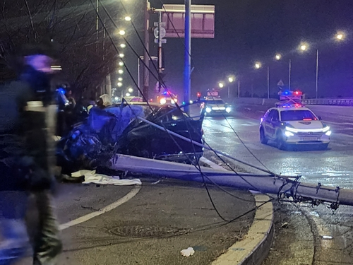6일 경찰과 소방에 따르면 전날 오후 9시 30분께 부산 강서구 성북동 부산항신항 복지플러스센터 인근 교차로에서 운행 중이던 승용차가 전봇대를 정면으로 들이받았다.