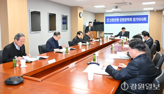 신한은행 강원장학회는 10일 신한은행 강원영서본부 회의실에서 박진오 강원일보 사장 등 이사진 7명이 참석한 가운데 ‘2026년도 정기이사회’를 갖고 2025년도 장학사업 결산 승인, 올해 장학사업계획 등을 의결했다.