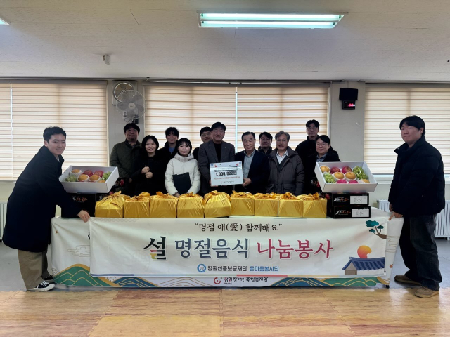 강원신용보증재단(이사장: 김기선)은 설 명절을 맞아 10일 재단 임직원 11여 명이 참여한 가운데 강원특별자치도장애인종합복지관과 함께 ‘설 명절음식 나눔행사’를 펼쳤다. 또 이날 춘천 시내 취약계층 가정을 방문해 명절음식 꾸러미를 전달하고 말벗 지원 봉사활동을 벌였다.