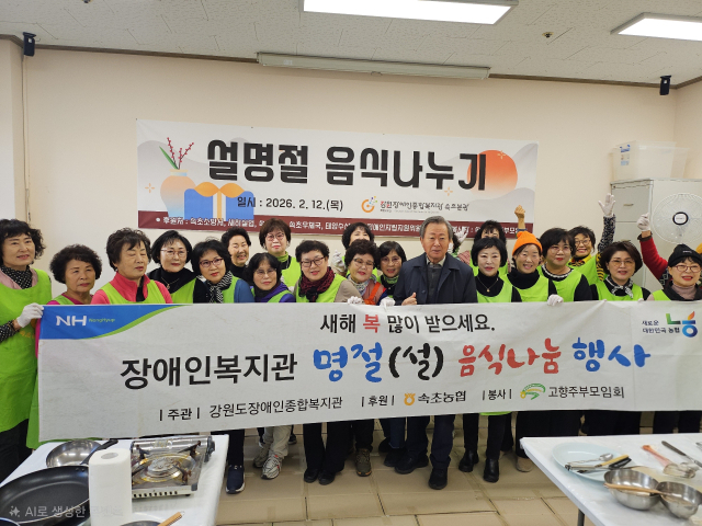 속초농협(조합장:최원규)과 속초농협 고향주부모임(회장:배금주)은 12일 강원특별자치도장애인종합복지관 속초분관에서 설 명절을 맞아 음식나눔 행사를 개최했다.