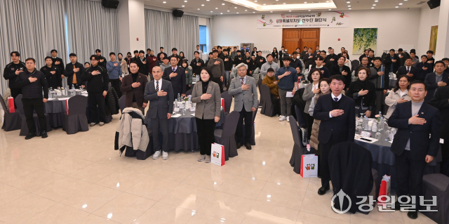 사상 첫 우승을 기록한 제23회 전국장애인동계체육대회 강원특별자치도 선수단 해단식이 12일 춘천 세종호텔에서 김진태 강원특별자치도지사, 방정기 도장애인체육회 사무처장, 박기영·임미선 도의원 등 내빈들과 선수단이 참석한 가운데 열렸다.