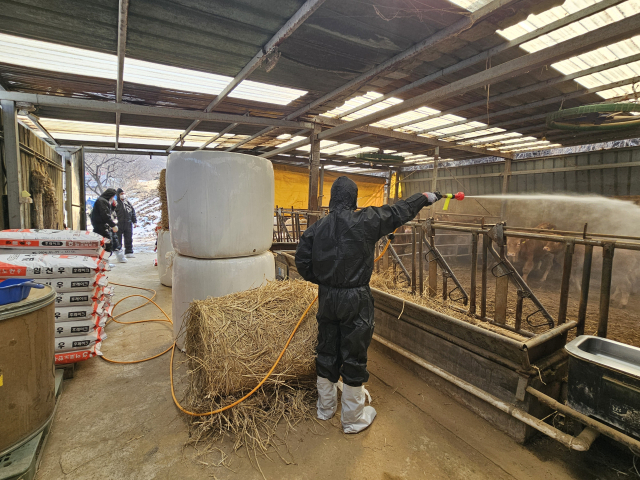 정선군(군수:최승준)과 농협정선군지부(지부장:김보성), 평창영월정선축협(조합장:고광배)이 지난 13일 정선읍 북실리 한우사육 농가 3곳을 시작으로 지역 축산 농가를 대상으로 가축 전염병 지역 유입 사전 차단을 위한 합동 특별 방역을 실시하고 있다.정선군(군수:최승준)과 농협정선군지부(지부장:김보성), 평창영월정선축협(조합장:고광배)이 지난 13일 정선읍 북실리 한우사육 농가 3곳을 시작으로 지역 축산 농가를 대상으로 가축 전염병 지역 유입 사전 차단을 위한 합동 특별 방역을 실시하고 있다.