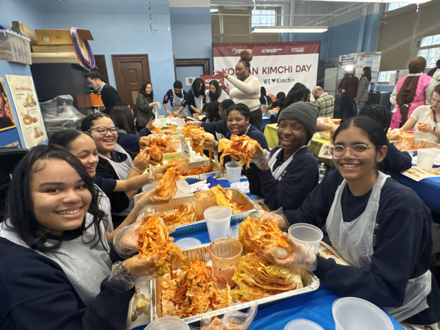 미국 뉴욕 맨해튼의 한 공립 고등학교에서 김치 담그기 체험과 K-푸드 급식 행사가 열리며 현지 학생·교직원들의 관심을 끌었다.