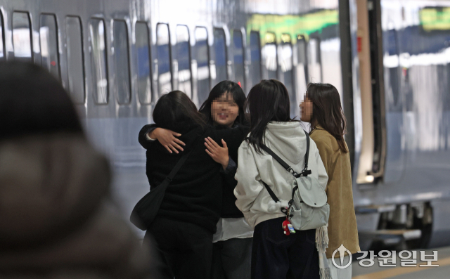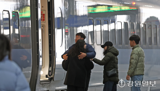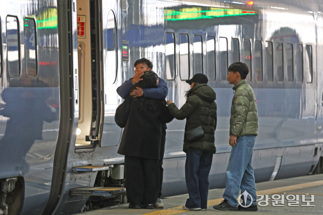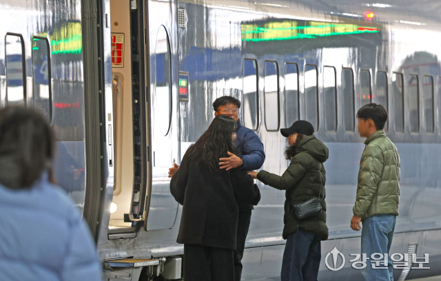 설 연휴 마지막 날인 18일 KTX강릉역에서 소중한 만남을 뒤로하고 귀경하는 가족들이 인사를 나누고 있다. 강릉=권태명기자