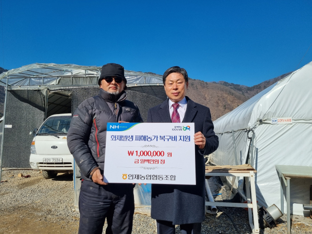 인제농협(조합장:정성빈)은 19일 인제군 남면 남전리에서 화재피해로 어려움을 겪고 있는 조합원을 방문, 재해복구지원비를 전달했다.