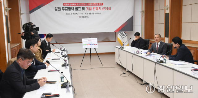 강원특별자치도 투자정책 발표 및 기업 관계자 간담회가 19일 도청 본관회의실에서 김진태 지사 및 도내 투자기업 대표·관계자 등이 참석한 가운데 열렸다.