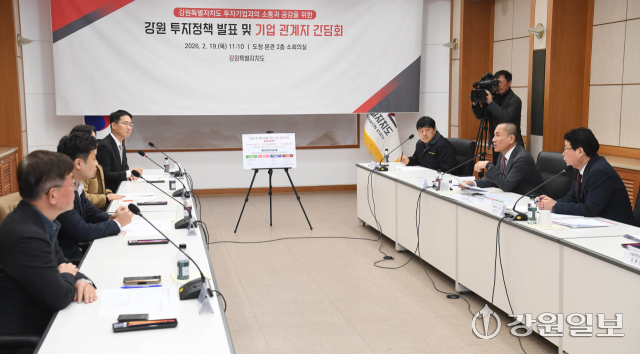 강원특별자치도 투자정책 발표 및 기업 관계자 간담회가 19일 도청 본관회의실에서 김진태 지사 및 도내 투자기업 대표·관계자 등이 참석한 가운데 열렸다. 박승선기자강원특별자치도 투자정책 발표 및 기업 관계자 간담회가 19일 도청 본관회의실에서 김진태 지사 및 도내 투자기업 대표·관계자 등이 참석한 가운데 열렸다. 박승선기자강원특별자치도 투자정책 발표 및 기업 관계자 간담회가 19일 도청 본관회의실에서 김진태 지사 및 도내 투자기업 대표·관계자 등이 참석한 가운데 열렸다. 박승선기자