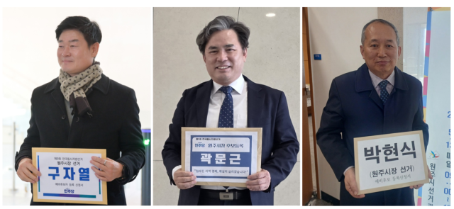 민주당 소속의 구자열 (사)원주내일연구원 이사장과 곽문근 시의회 부의장은 이날 오전 시선거관리위원회를 찾아 예비후보 등록을 했다. 같은 날 오후 국힘 소속 박현식 전 도당 부위원장이 가세했다.