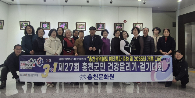 홍천문화원(원장:박주선)은 20일 전시실 앞에서 오는 3월 1일 열리는 군민건강달리기 대회 참가와 광역철도 조기 착공에 한마음으로 나설 것을 다짐하며 파이팅을 외쳤다.