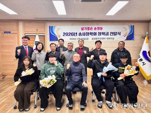 강릉시 송정동 송사장학회(회장: 지명복)는 지난 20일 주민센터(동장: 강정희)에서 지역 중고등학생 4명에게 각 50만 원씩, 총 200만 원의 장학금과 장학증서를 전달했다.