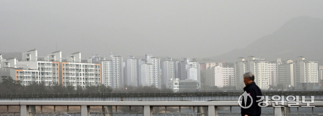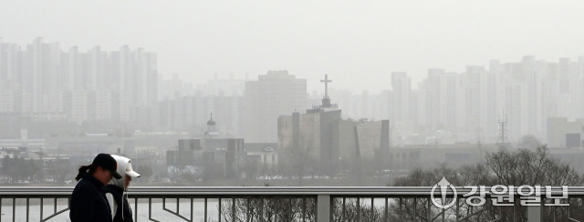 고비사막과 내몽골고원에서 발원한 황사가 국내로 유입된 22일 춘천시 소양3교에서 바라본 도심이 뿌옇다.