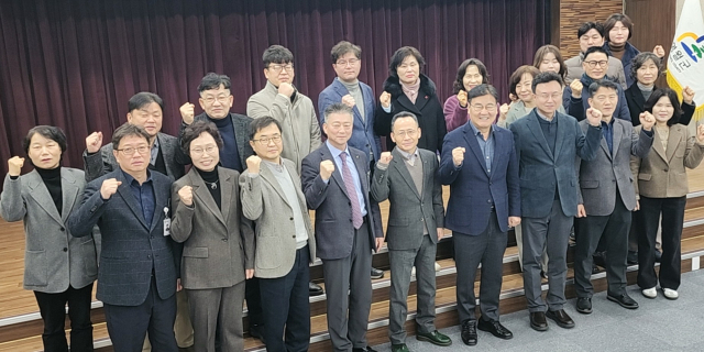 최명서 군수와 전대복 부군수 등 각 실·과·소장들은 23일 군청에서 다음 달 1일 오후 1시 영월읍 스포츠파크 일대에서 본보가 개최하는 ‘3·1절 기념 제27회 영월군민 건강달리기대회’ 완주를 다짐하는 파이팅을 외쳤다.