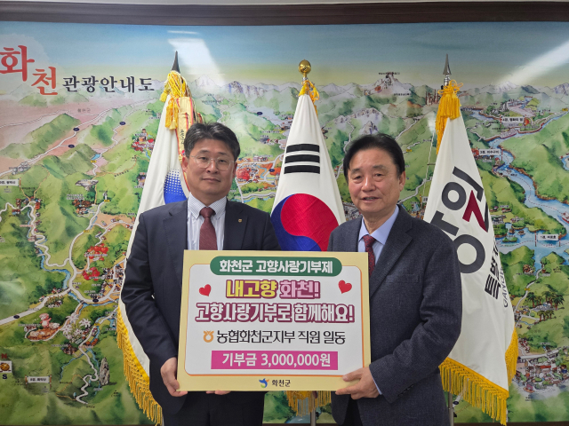 NH농협화천군지부(지부장:민연홍)는 23일 화천군청을 방문해 고향사랑 기부금 300만원을 기탁했다.