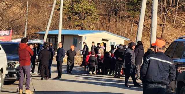 [포토뉴스]횡성 용둔리 주민들 군부대 공사 차량 진입 반대