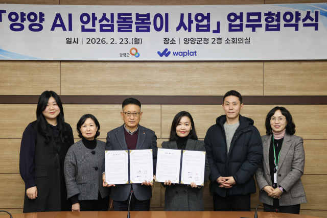 양양군은 23일 군청 소회의실에서 와플랫 주식회사(대표:황선영)와 ‘양양 AI 안심 돌봄이 사업’ 추진을 위한 업무협약(MOU)을 체결했다.