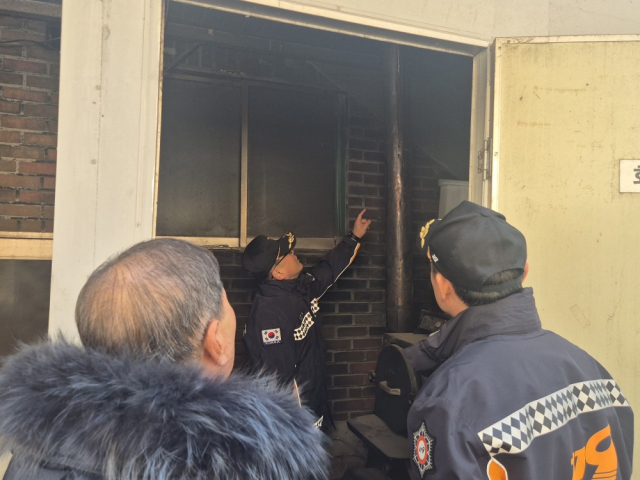 권혁범 양구소방서장이 23일 지역 내 화목보일러 설치 가구를 방문해 화목보일러를 확인하고 있다.
