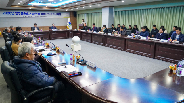 2026 양구군 농업·농촌 및 식품산업 정책심의회가 23일 양구군청 중회의실에서 열렸다. 이날 심의회에서는 5개 분과(농업 및 식량, 농촌, 식품 및 유통원예, 축산, 산림)가 참석한 가운데 2026년 농림축산식품사업 확정과 2027년 사업 신청 안건을 심의했다.