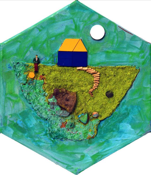 서로 다른 무게와 질감을 가진 돌과 한지가 한 캔버스 안에서 만날 때 각 재료가 갖는 특성은 더욱 두드러진다. 작품 속 돌들은 인간에게 주어진 숙명적 부조리이자 운명처럼 정해진 본질의 압력을 상징한다. 이와 대비되는 한지는 새로운 본질을 선택하고 창조하려는 실존적 역동성을 의미한다.