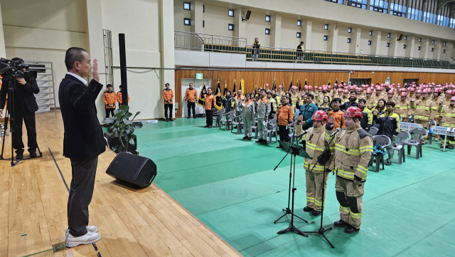 강원특별자치도소방본부는 24일 원주 문막읍 농민문화체육센터에서 김진태 도지사, 김시성 도의장, 오승훈 도소방본부장, 김두남·강복심 도의용소방대연합회장, 18개 시·군 의용소방대연합회장 등 총 800여명이 참석한 가운데 도 의용소방대 산불진화대 발대식을 개최했다. 이날 행사는 산불진화대 추진 경과를 시작으로 위촉장 수여, 결의문 낭독, 기념사, 축사 등 순으로 진행됐다.