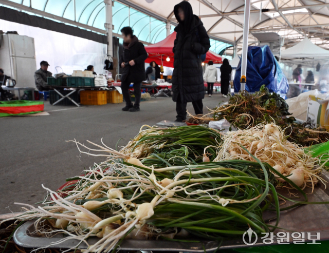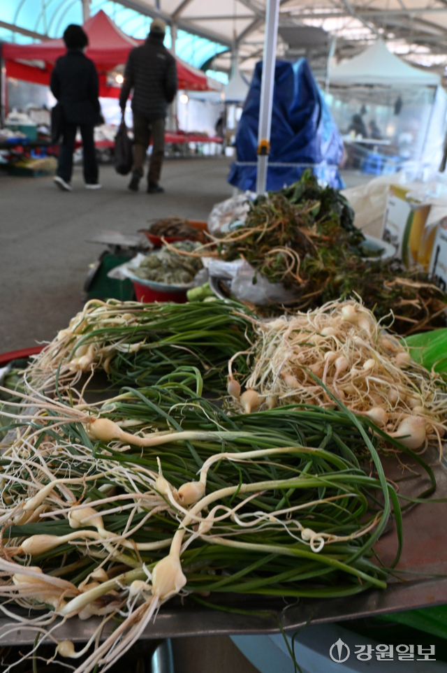 24일 춘천 샘밭시장에서 달래와 냉이 등 봄나물이 판매되고 있어 우리의 식탁에도 봄이 다가왔음을 느끼게 한다.