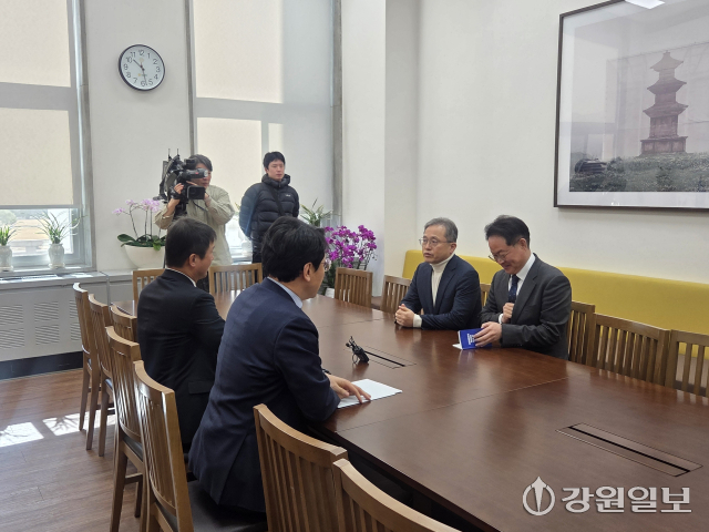 송기헌·허영 의원은 이날 한 원내대표 면담에 이어 국민의힘 송언석 원내대표도 찾아 강원특별법 논의에 속도를 내달라고 요청했다.